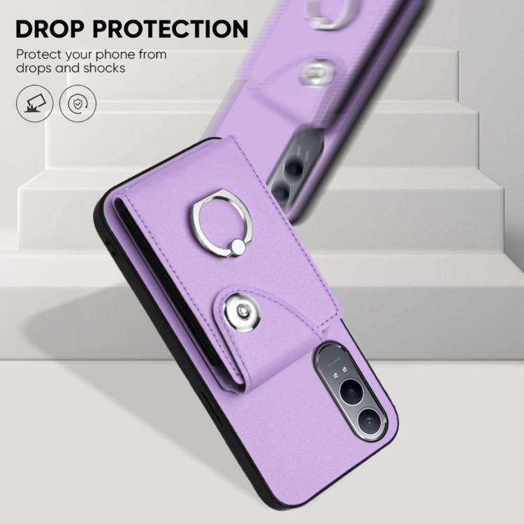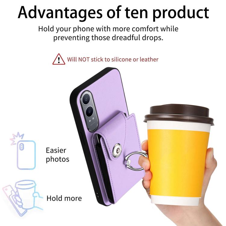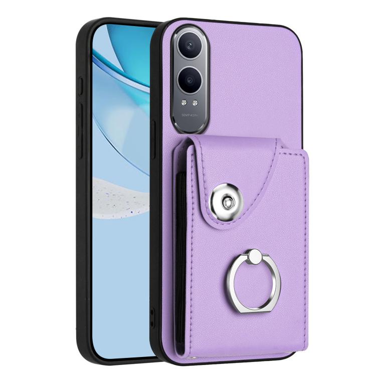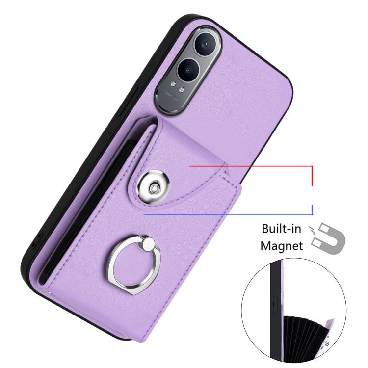 For OnePlus Nord CE4 Lite 5G / OPPO K12x Organ Card Bag Ring Holder PU Phone Case(Purple)