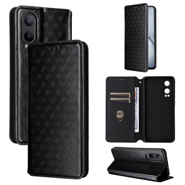 For OnePlus Nord CE4 Lite Cubic Grid Texture Flip Leather Phone Case(Black)