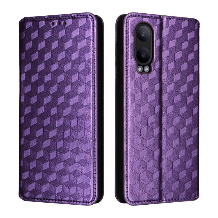For OnePlus Nord CE4 Lite Cubic Grid Texture Flip Leather Phone Case(Purple)