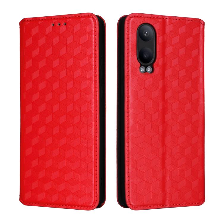 For OnePlus Nord CE4 Lite Cubic Grid Texture Flip Leather Phone Case(Red)