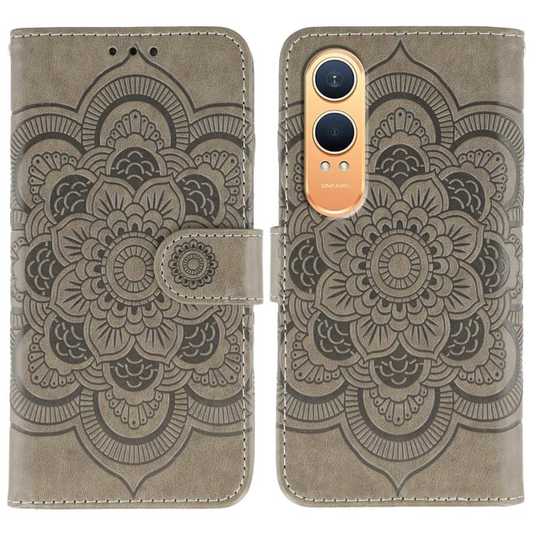 For OnePlus Nord CE4 Lite Global Sun Mandala Embossing Pattern Phone Leather Case(Grey)