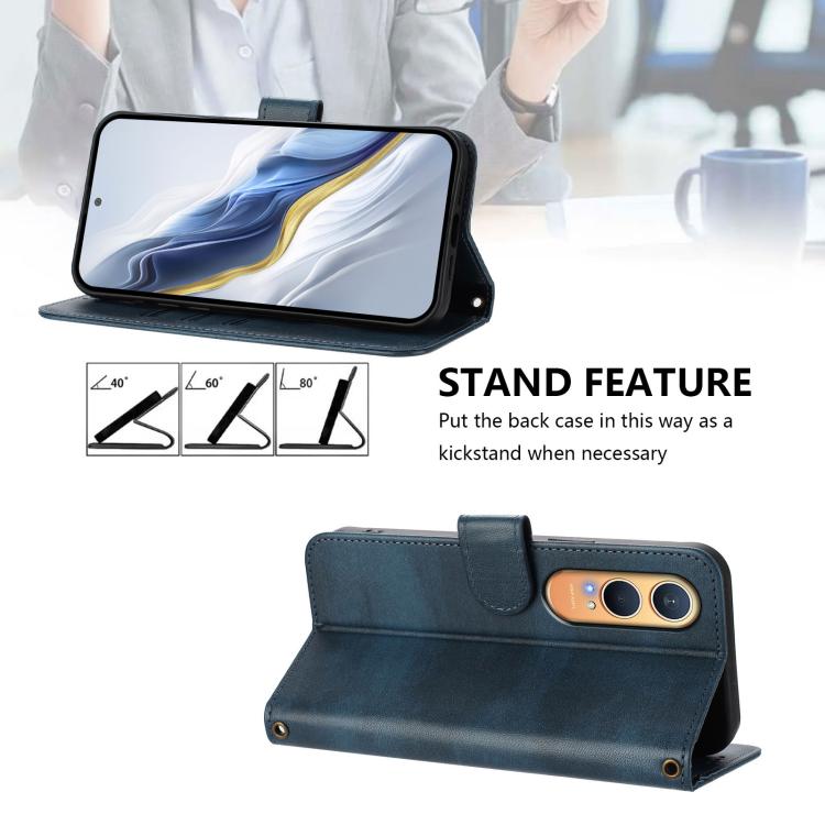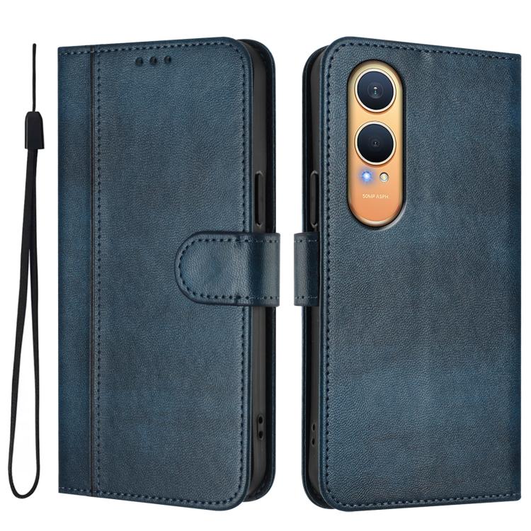 For OnePlus Nord CE4 Lite India Line Splicing Buckle Retro Leather Phone Case(Dark Blue)