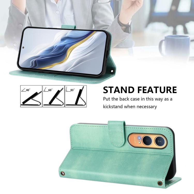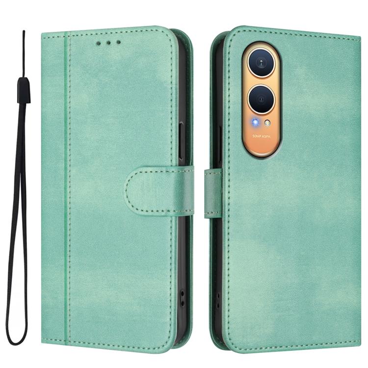 For OnePlus Nord CE4 Lite India Line Splicing Buckle Retro Leather Phone Case(Mint Green)
