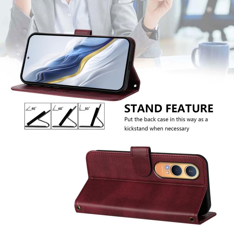 For OnePlus Nord CE4 Lite India Line Splicing Buckle Retro Leather Phone Case(Wine Red)
