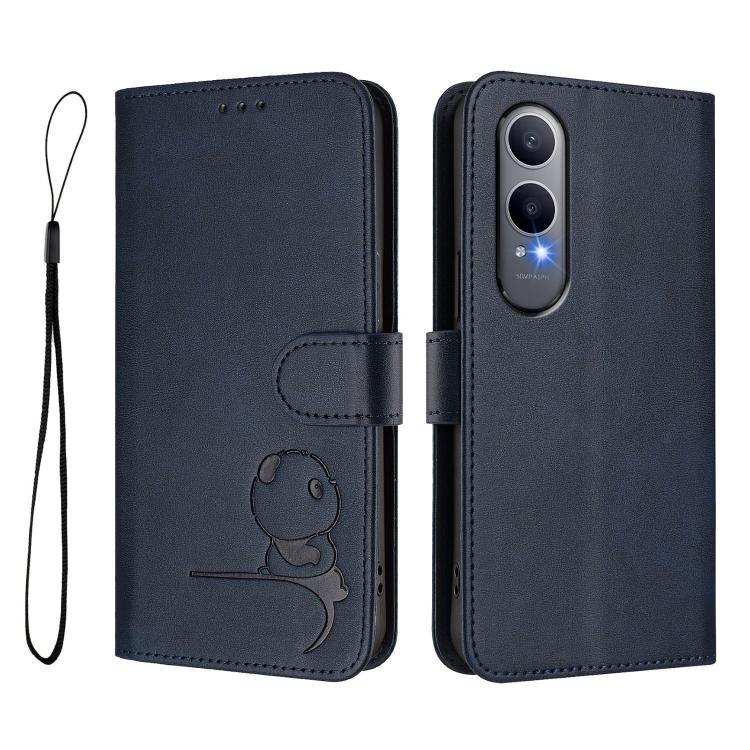 For OnePlus Nord CE4 Lite Litter Panda Embossing RFID Leather Phone Case with Lanyard(Blue)