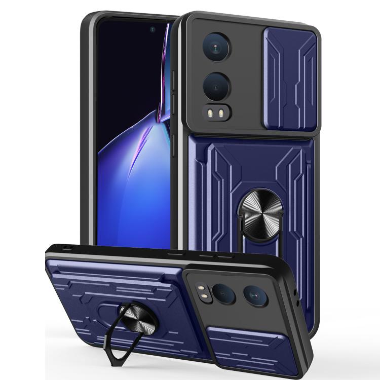 For OnePlus Nord CE4 Lite Sliding Camshield TPU+PC Phone Case with Card Slot(Blue)