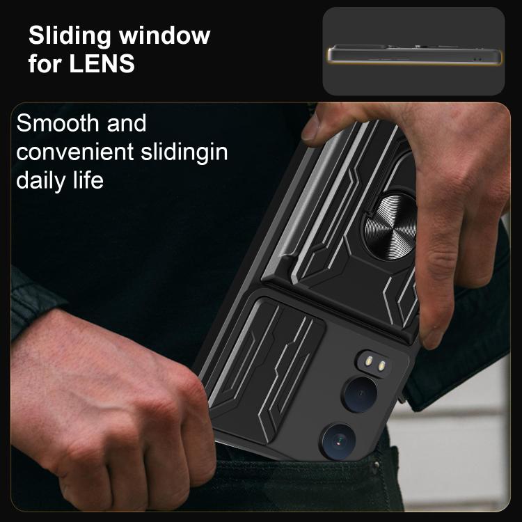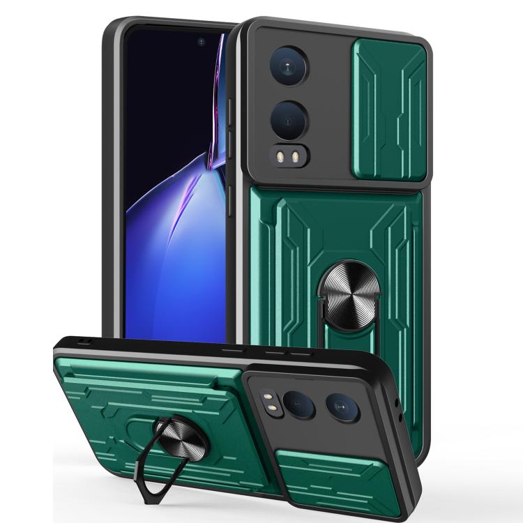 For OnePlus Nord CE4 Lite Sliding Camshield TPU+PC Phone Case with Card Slot(Dark Green)