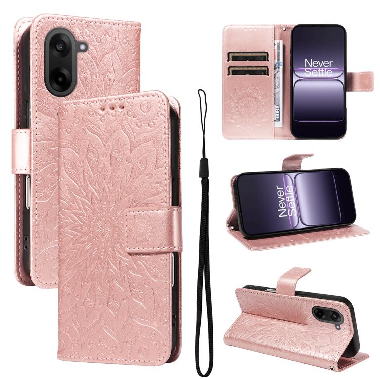 For OnePlus Nord CE5 Embossed Sunflower Pattern Flip Leather Phone Case(Rose Gold)