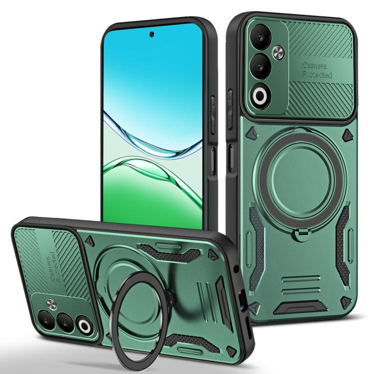 For OPPO A5 4G MagSafe 2 in 1 TPU Phone Case with Rotating Holder(Green)