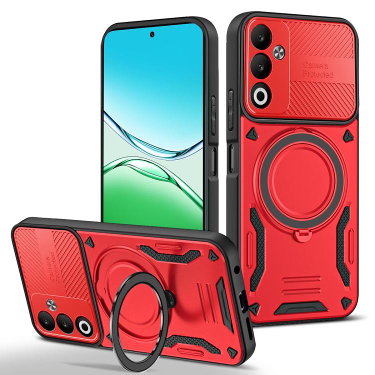 For OPPO A5 4G MagSafe 2 in 1 TPU Phone Case with Rotating Holder(Red)