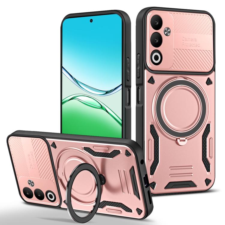 For OPPO A5 4G MagSafe 2 in 1 TPU Phone Case with Rotating Holder(Rose Gold)
