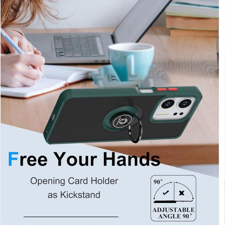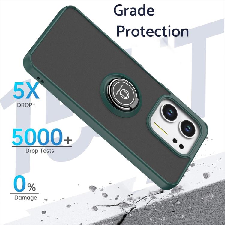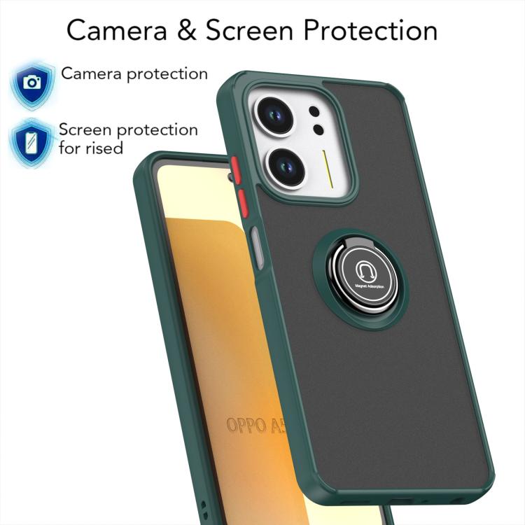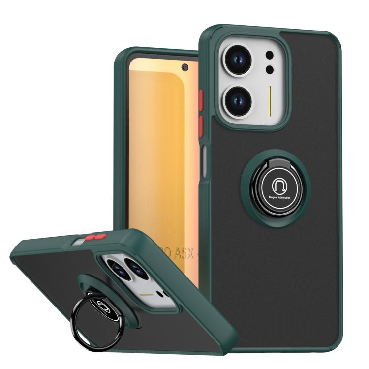 For OPPO A5x 5G / 4G Q Shadow 1 Series TPU + PC Phone Case with Ring(Dark Green + Red)