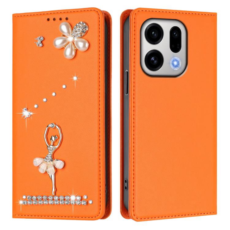 For OPPO Find X9 Ballet Girl Diamond Studded RFID Vegan Leather Phone Case(Orange)