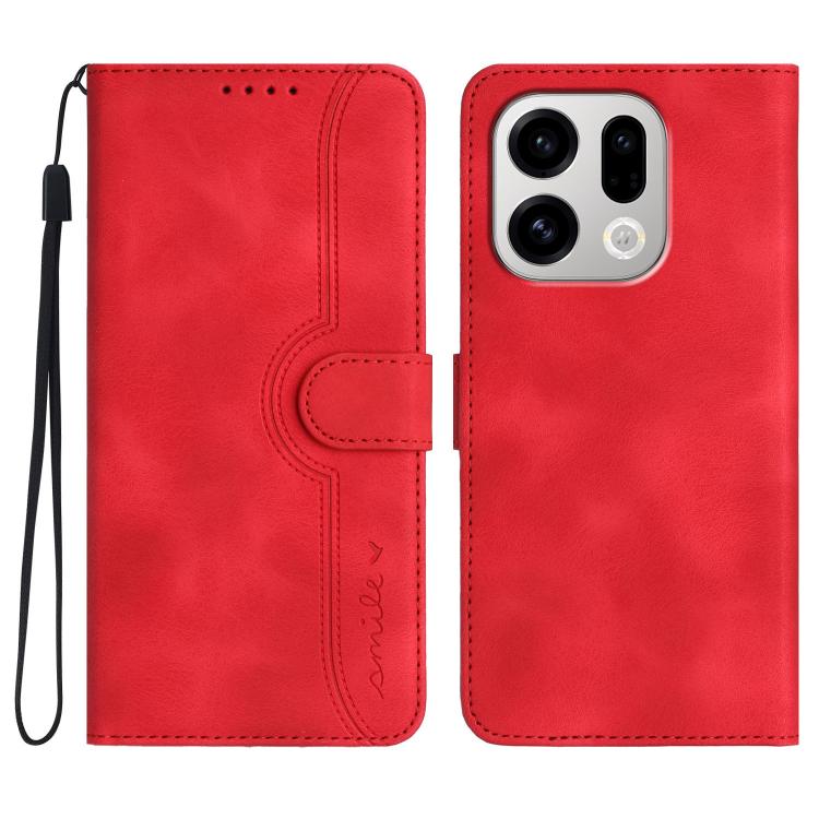 For OPPO Find X9 Heart Pattern Skin Feel Leather Phone Case(Red)