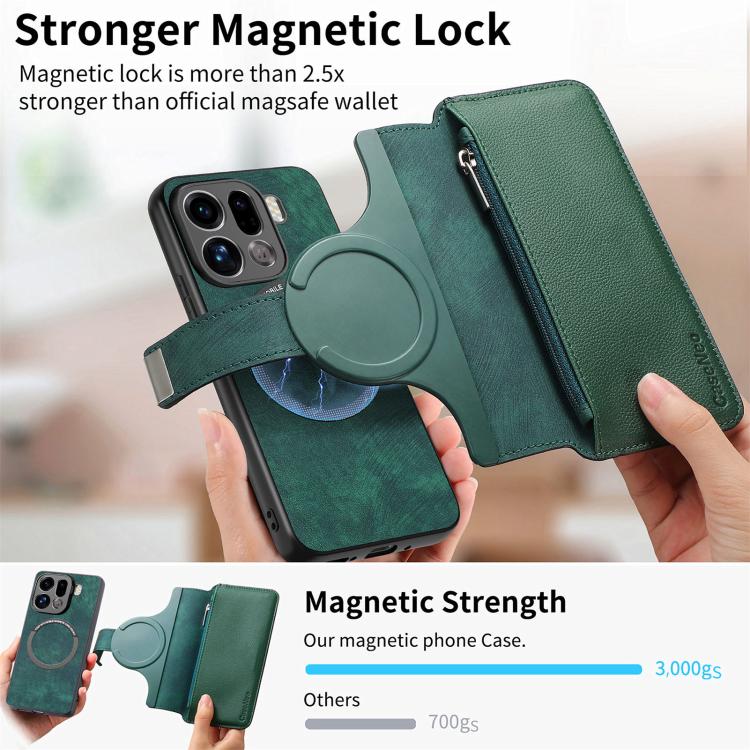 For OPPO Find X9 Pro CaseNeo MagSafe RFID Anti-theft Zipper Wallet Retro Leather Phone Case(Green)