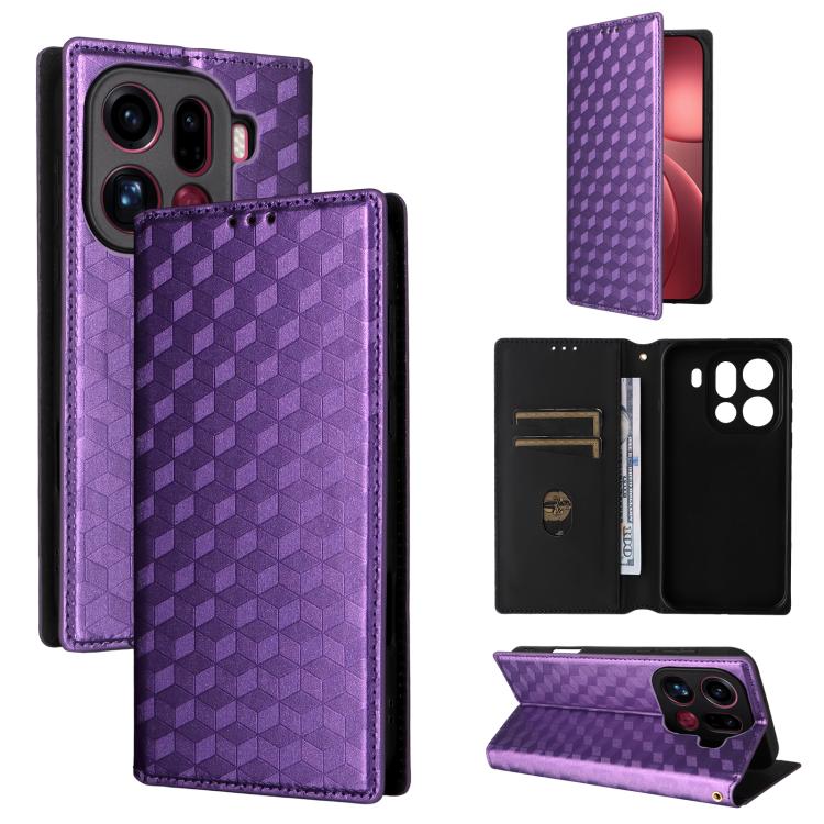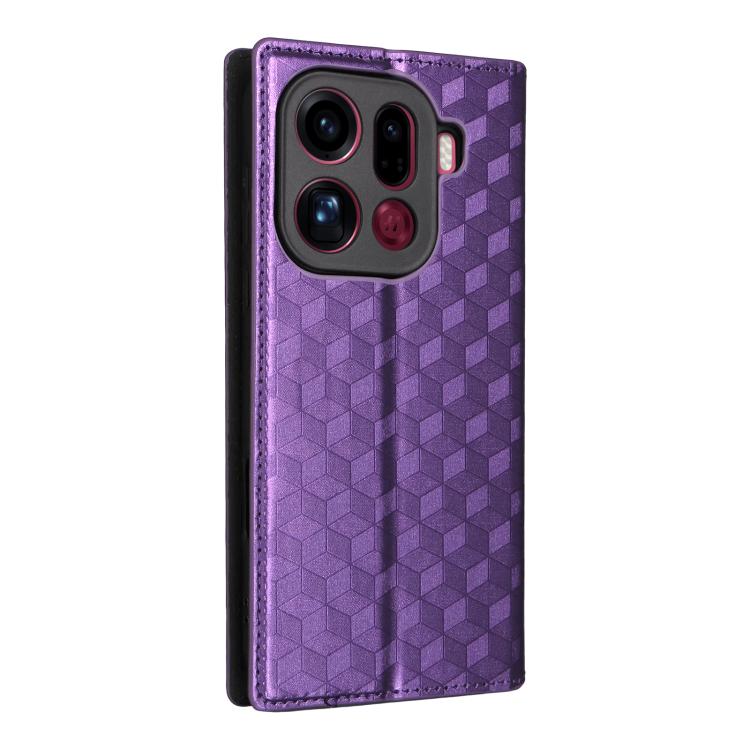 For OPPO Find X9 Pro Cubic Grid Texture Flip Leather Phone Case(Purple)