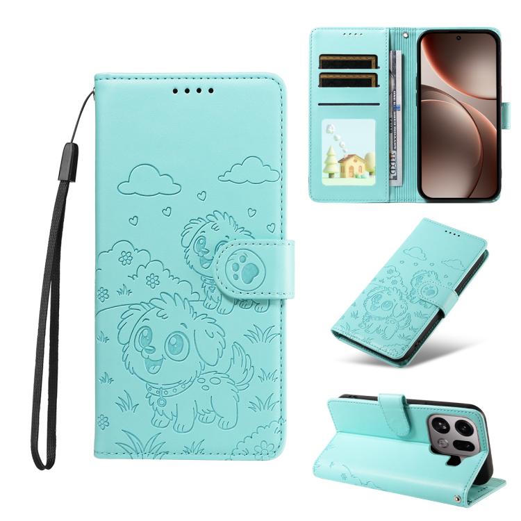 For OPPO Find X9 Pro Embossed Heart Dog RFID Blocking Wallet Leather Phone Case(Green)