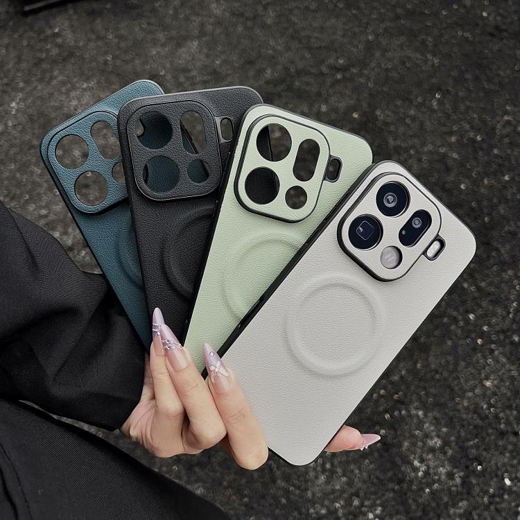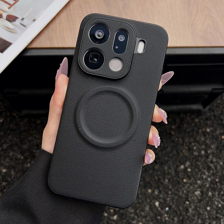 For OPPO Find X9 Pro Magsafe Magnetic Plain Leather Phone Case(Black)
