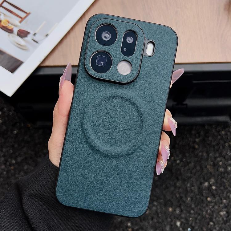 For OPPO Find X9 Pro Magsafe Magnetic Plain Leather Phone Case(Dark Green)