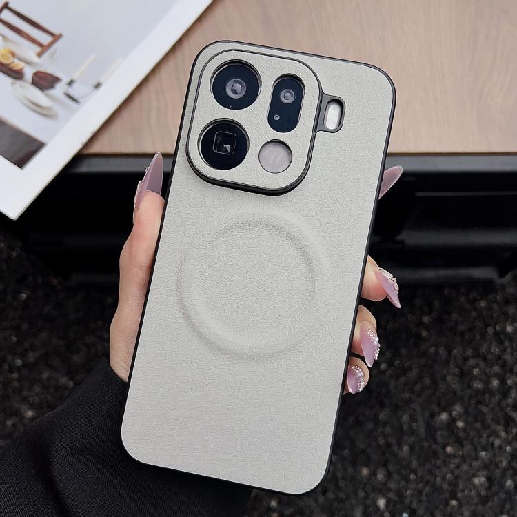For OPPO Find X9 Pro Magsafe Magnetic Plain Leather Phone Case(White)