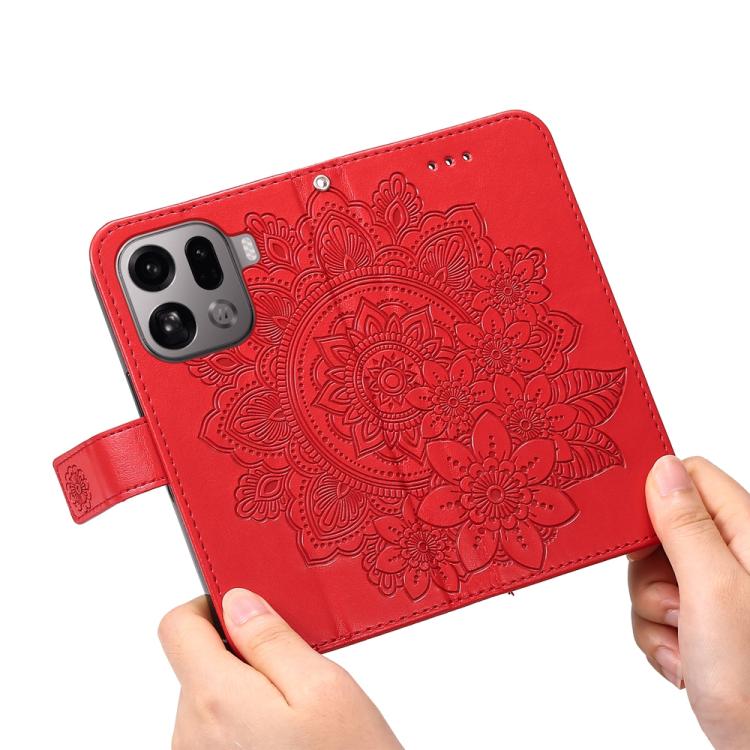 For OPPO Find X9 Pro Seven-petal Flowers Embossing Leather Phone Case(Red)