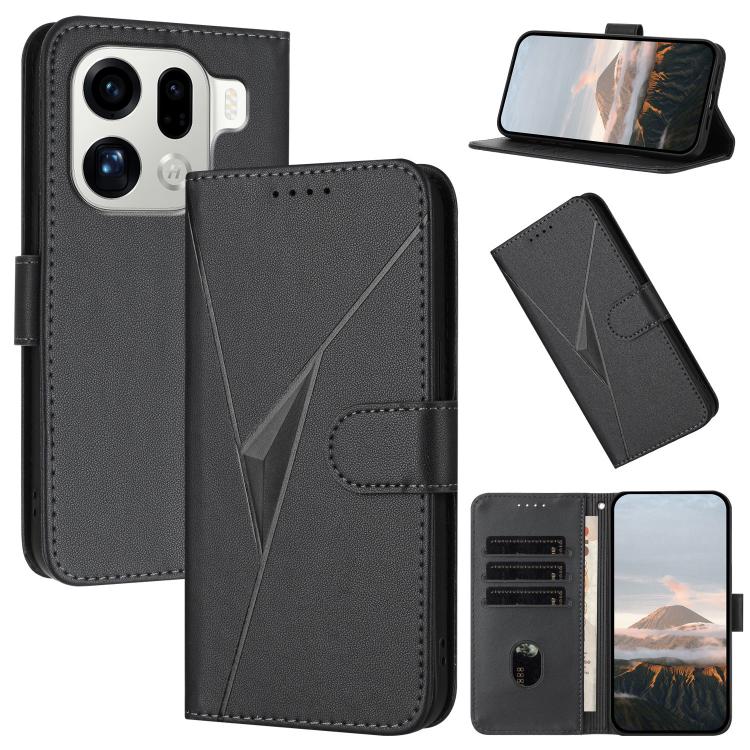 For OPPO Find X9 Pro Triangle Pattern Buckle Clasp Leather Phone Case(Black)