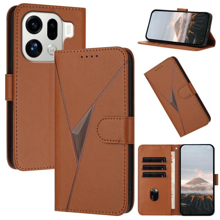 For OPPO Find X9 Pro Triangle Pattern Buckle Clasp Leather Phone Case(Brown)