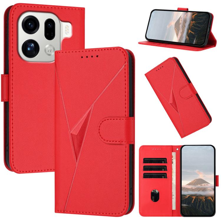 For OPPO Find X9 Pro Triangle Pattern Buckle Clasp Leather Phone Case(Red)