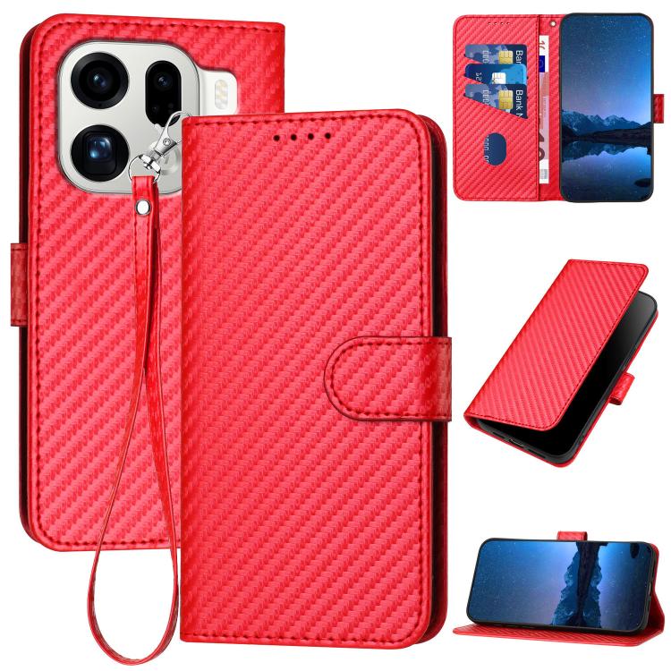 For OPPO Find X9 Pro YX0070 Carbon Fiber Buckle Leather Phone Case with Lanyard(Red)