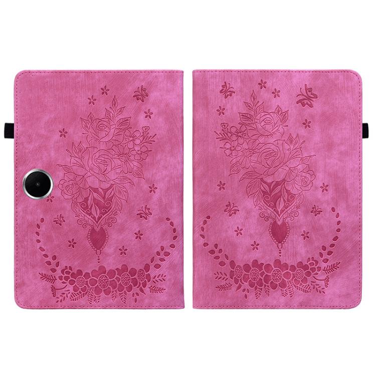 For OPPO Pad SE 11 inch Butterfly Rose Embossed Leather Tablet Case(Rose Red)