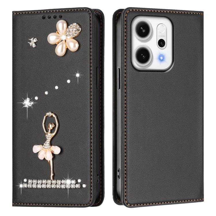 For OPPO Reno14 F 5G Global Ballet Girl Diamond Studded RFID Vegan Leather Phone Case(Black)