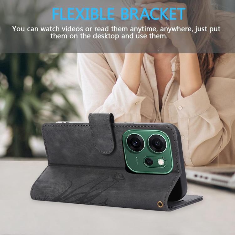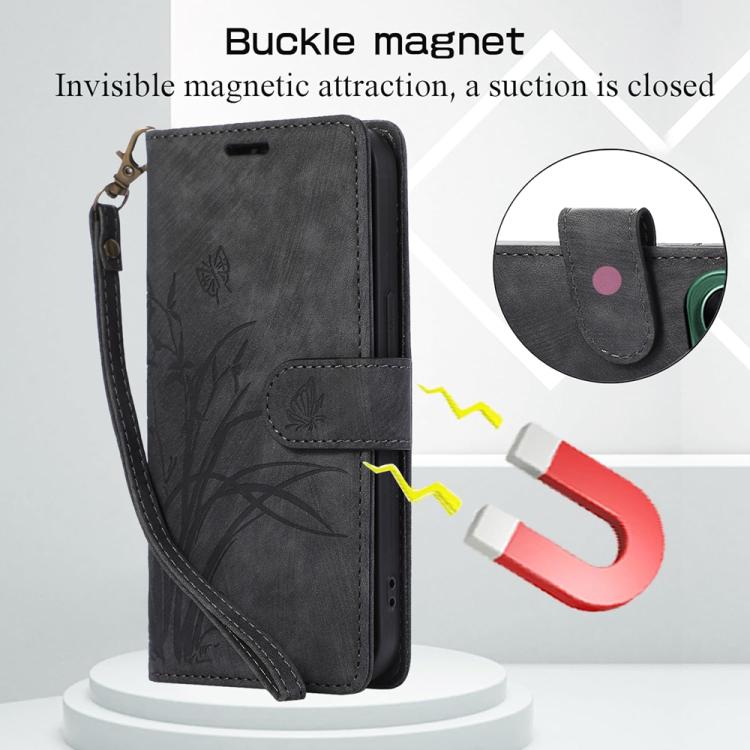 For OPPO Reno14 F 5G Orchid Butterfly Embossed Leather Phone Case(Black)