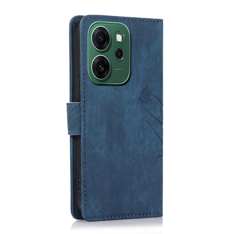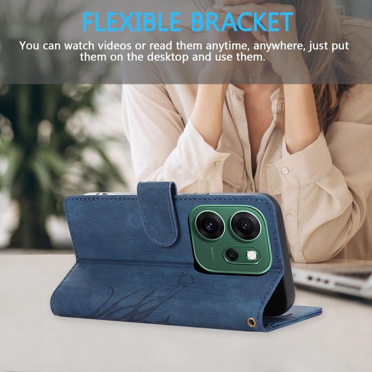 For OPPO Reno14 F 5G Orchid Butterfly Embossed Leather Phone Case(Blue)