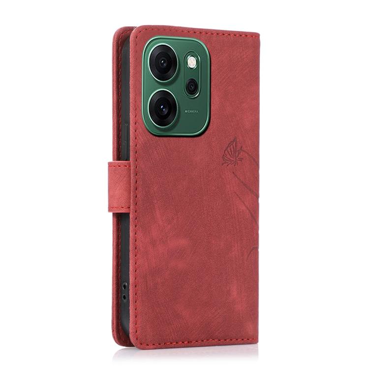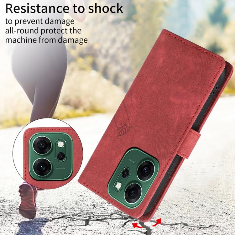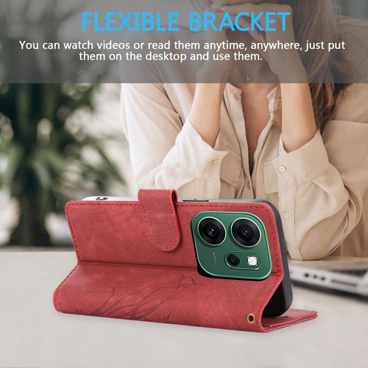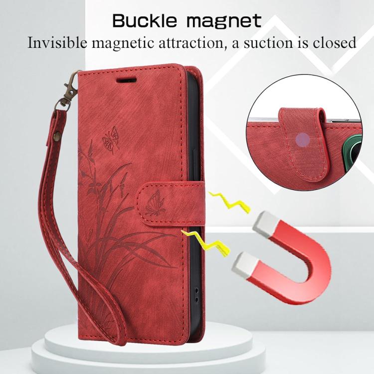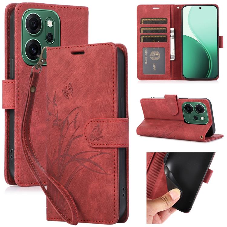 For OPPO Reno14 F 5G Orchid Butterfly Embossed Leather Phone Case(Red)