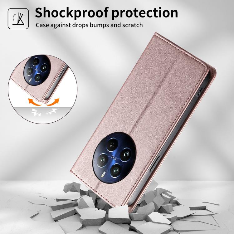 For Realme 12 Pro / Realme 12 Pro+ Stitched Line Magnetic RFID Vegan Leather Phone Case(Pink)