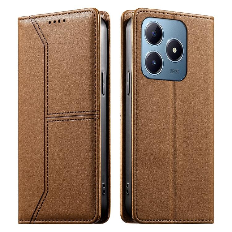 For Realme C63 4G / C61 / Note 60 Stitched Line Magnetic RFID Vegan Leather Phone Case(Brown)