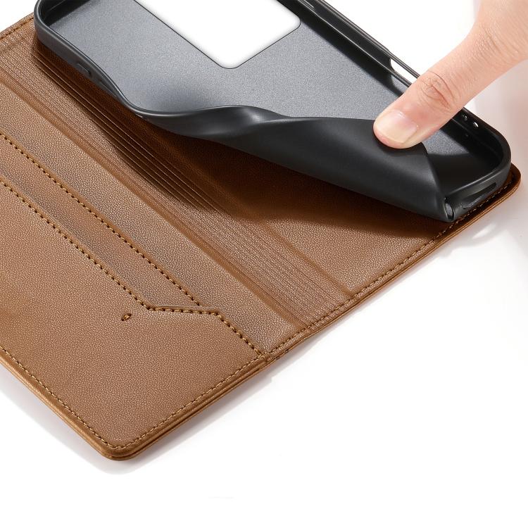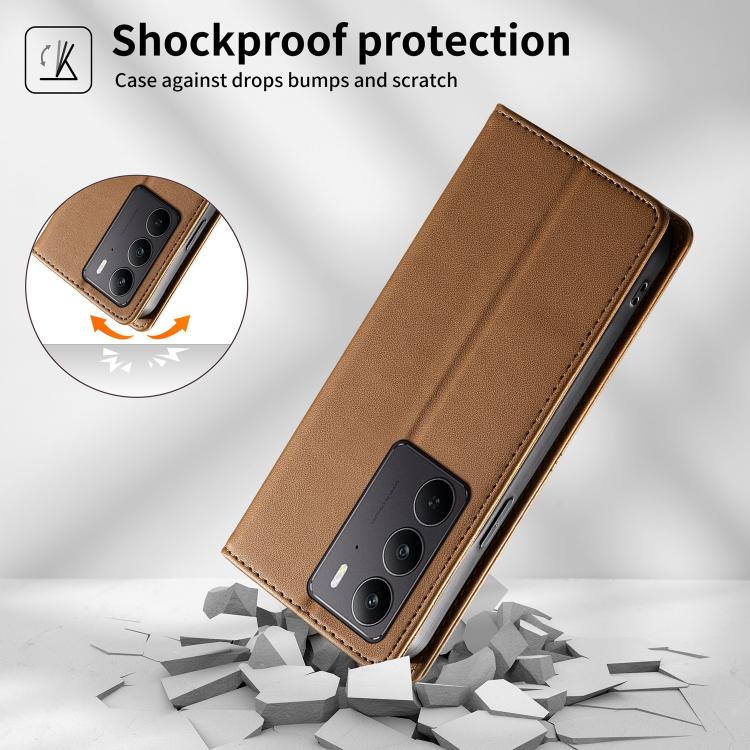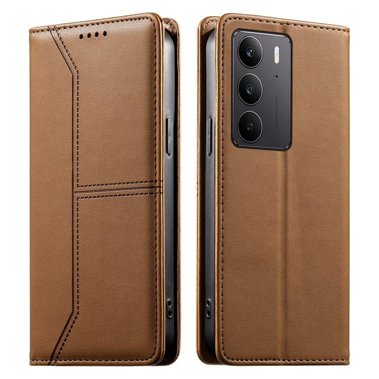 For Realme C75 4G / 14x India Stitched Line Magnetic RFID Vegan Leather Phone Case(Brown)
