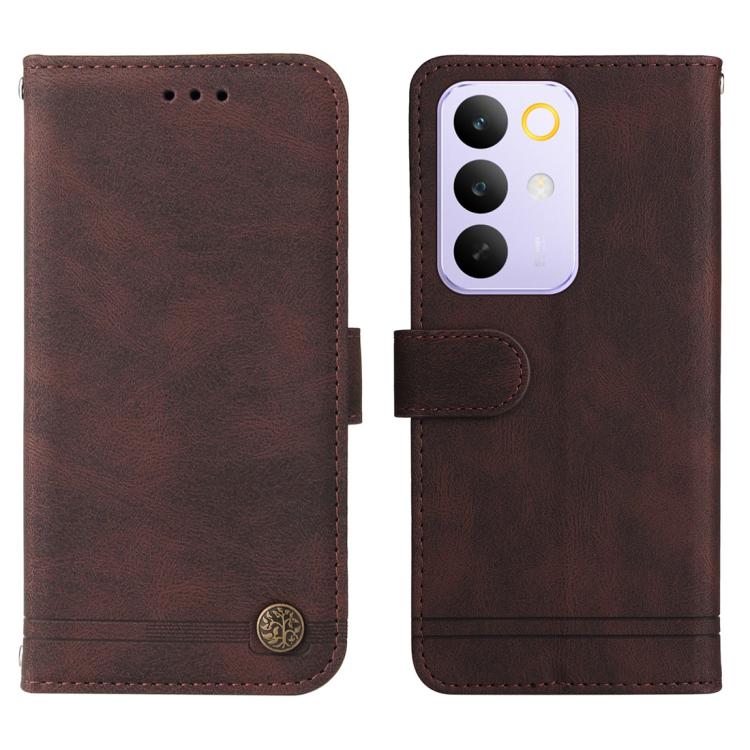 For Realme C85 Pro 4G Skin Feel Life Tree Metal Button Leather Phone Case(Brown)