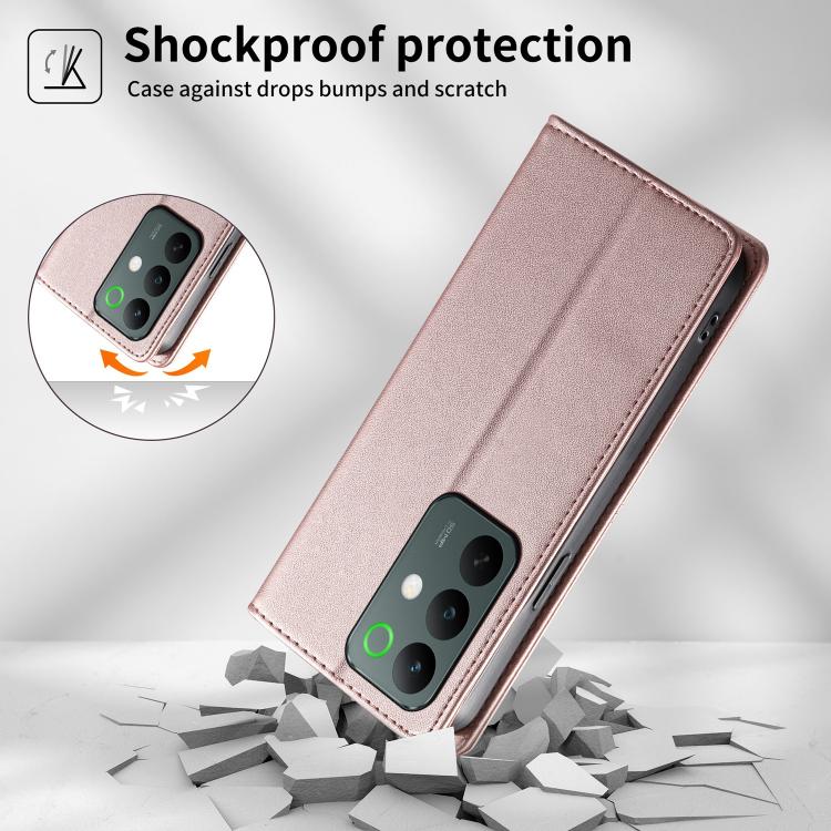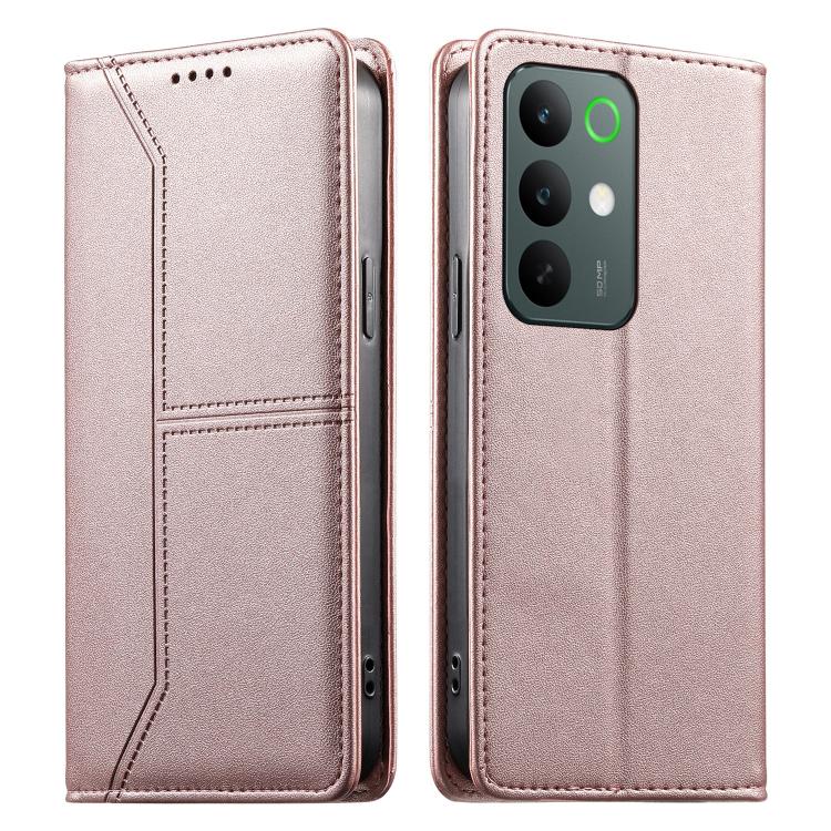 For Realme C85 Pro 4G Stitched Line Magnetic RFID Vegan Leather Phone Case(Pink)