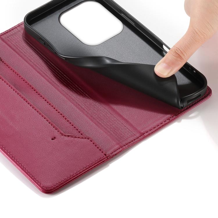 For Realme GT 6 / Realme GT 6T Stitched Line Magnetic RFID Vegan Leather Phone Case(Wine Red)