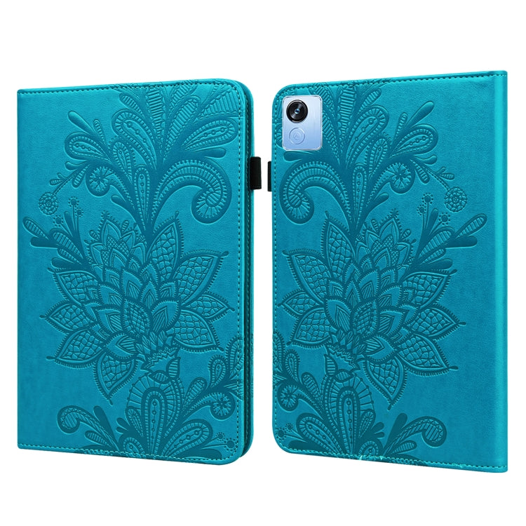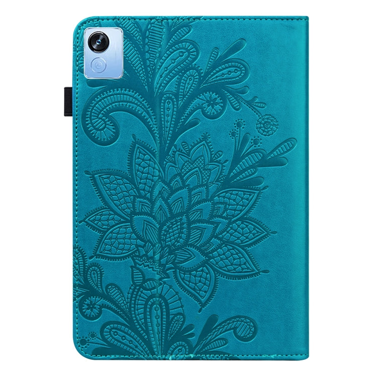 For Realme Pad X Lace Flower Embossing Pattern Leather Tablet Case(Blue)