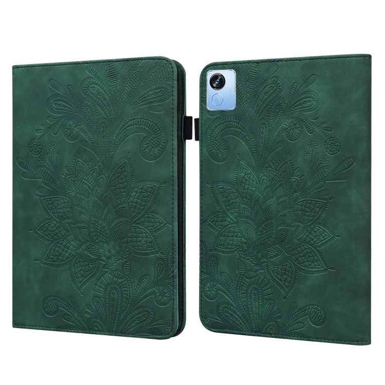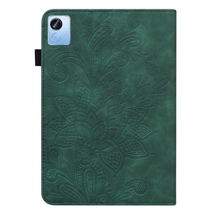 For Realme Pad X Lace Flower Embossing Pattern Leather Tablet Case(Green)