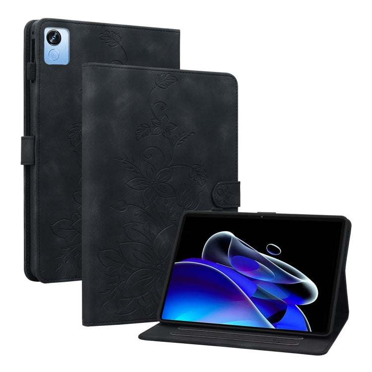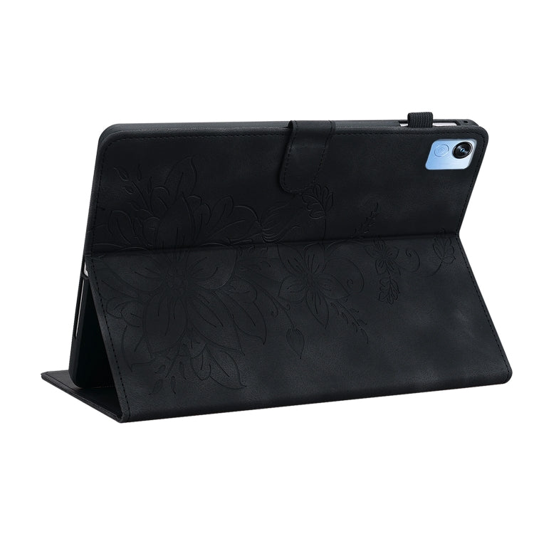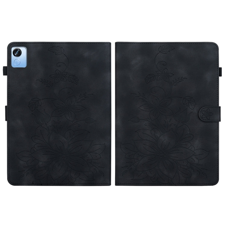 For Realme Pad X Lily Embossed Leather Tablet Case(Black)