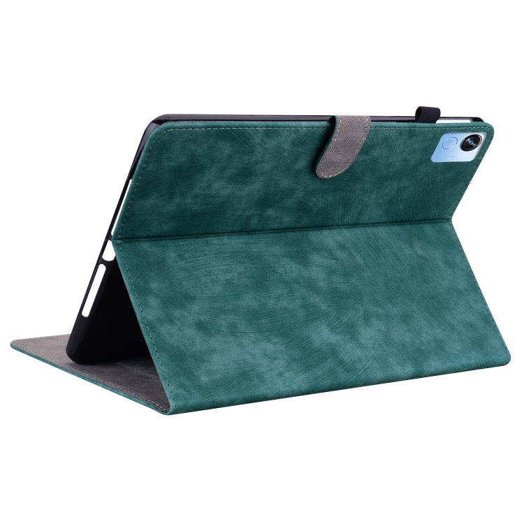 For Realme Pad X Tiger Pattern PU Tablet Case(Dark Green)