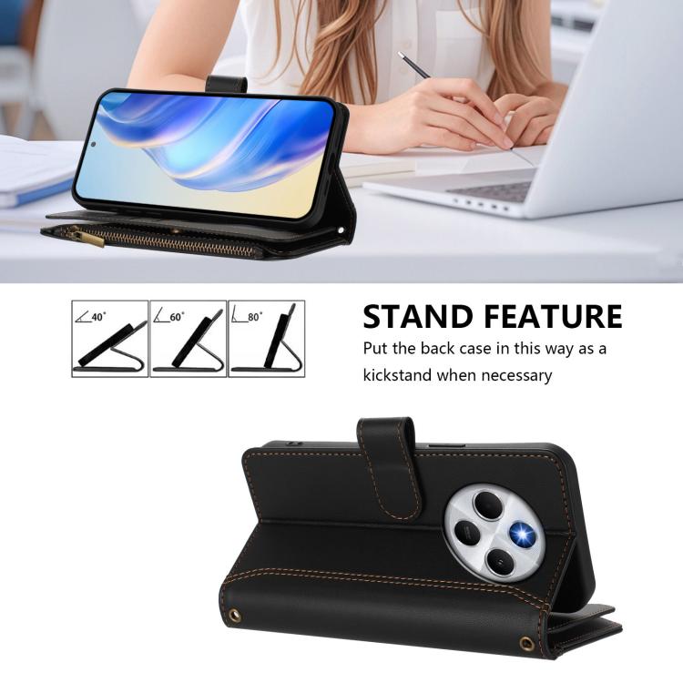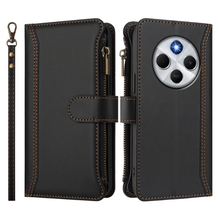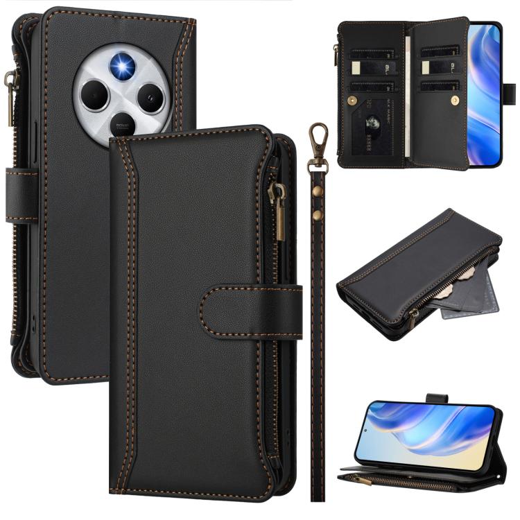 For Redmi 14C 4G / 14R 5G / A3 Pro Magnetic Closure 9 Card Slots Zipper Leather Case with Hand Strap(Black)