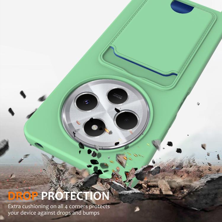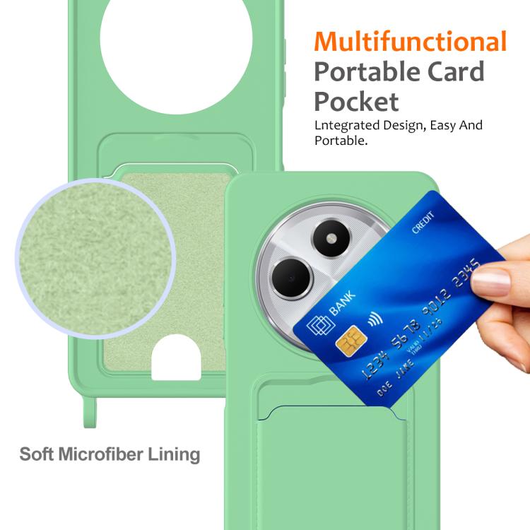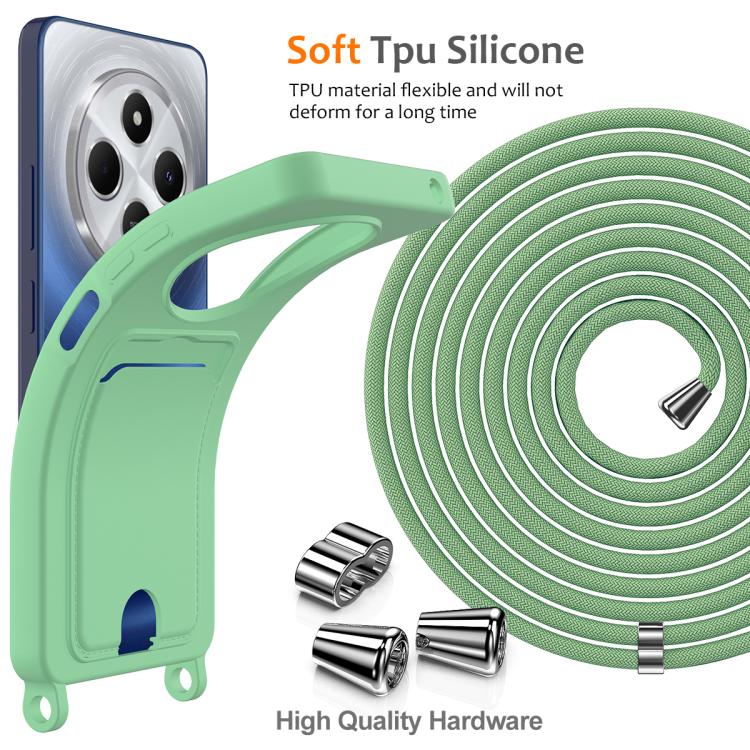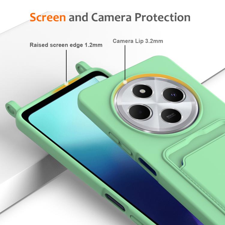 For Redmi 14C 4G / 14R 5G / A4 5G Integrated Card Bag Solid Color Liquid Silicone Phone Case with Lanyard(Green)