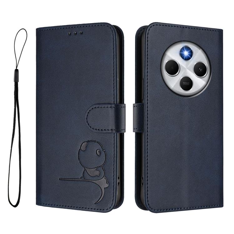 For Redmi 14C 4G / 14R 5G / A4 5G Litter Panda Embossing RFID Leather Phone Case with Lanyard(Blue)