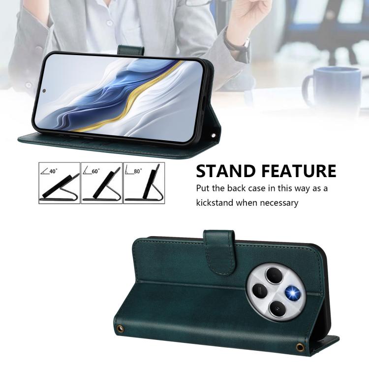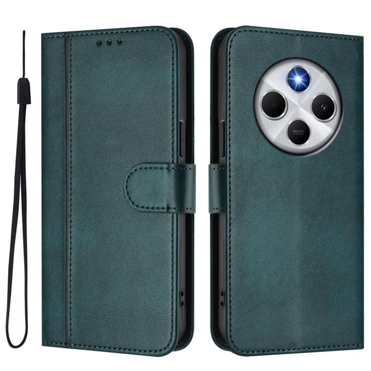 For Redmi 14C 4G / 14R 5G Global / A3 Pro Line Splicing Buckle Retro Leather Phone Case(Dark Green)