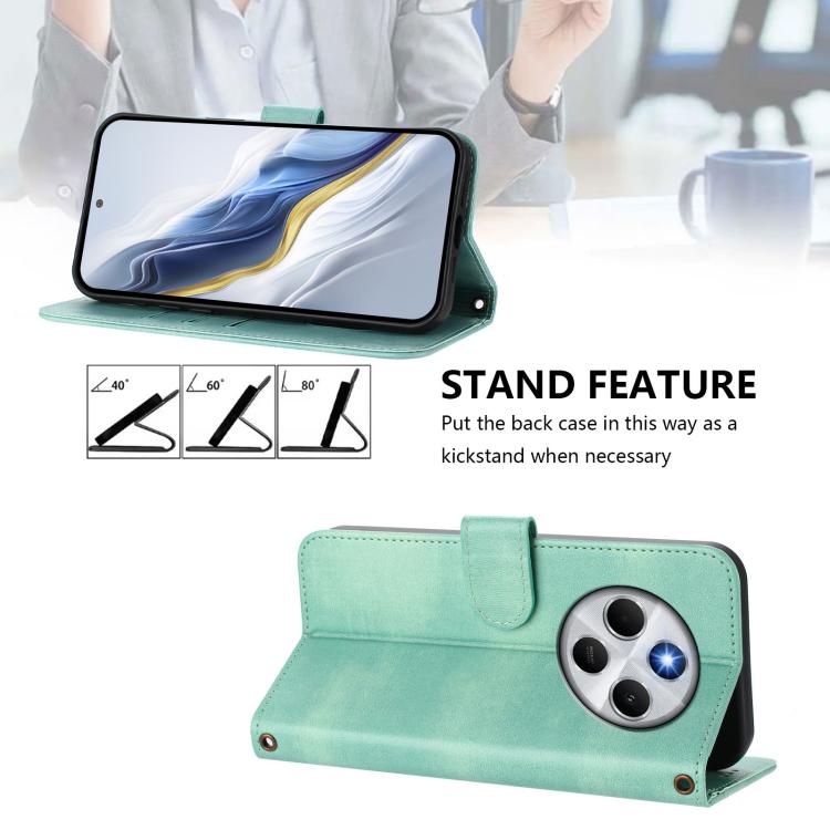 For Redmi 14C 4G / 14R 5G Global / A3 Pro Line Splicing Buckle Retro Leather Phone Case(Mint)