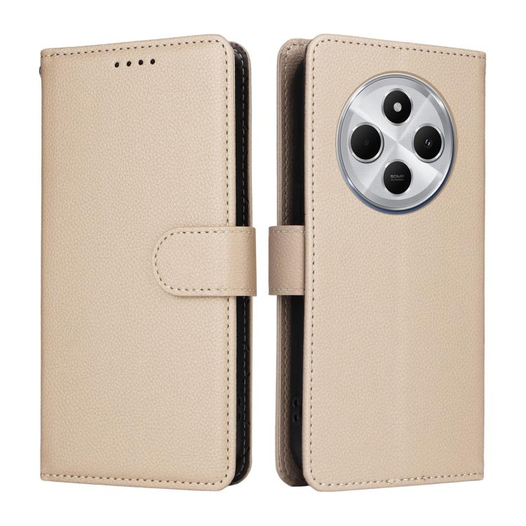 For Redmi 14C 4G / 5G / 14R / Poco M7 Litchi Texture RFID Blocking 3-Card Wallet Leather Phone Case(Beige)